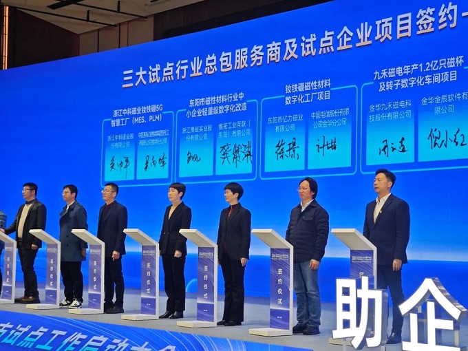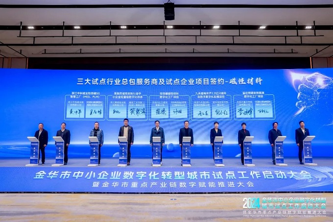 金華金辰作為此次金華市中小企業(yè)數(shù)字化轉(zhuǎn)型城市試點總包服務(wù)商(電動工具、磁性材料),倪小紅女士代表參與了此次啟動儀式。在啟動會上與磁性材料試點企業(yè)——九禾磁電進(jìn)行項目簽約,率先開展數(shù)字化轉(zhuǎn)型實踐。標(biāo)示著金華金辰在金華政府的支持下,將逐步探索出一條符合本地中小企業(yè)實際情況的數(shù)字化轉(zhuǎn)型特色之路,為中小企業(yè)數(shù)字化轉(zhuǎn)型提供有效金華經(jīng)驗!