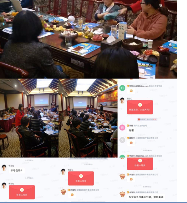 兩點(diǎn)四十,小伙伴們都到的差不多啦,金辰軟件的副總經(jīng)理倪小紅開場(chǎng)給大家做了活動(dòng)說明,強(qiáng)調(diào)活動(dòng)的意義,同時(shí)感謝客戶的積極參與,接下來由金蝶國(guó)際軟件集團(tuán)有限公司溫州金華的云之家分銷管理經(jīng)理周泠周老師介紹了一下云之家,還有金蝶國(guó)際軟件集團(tuán)有限公司溫州金華片區(qū)的總監(jiān)余海東余老師介紹了云之家基于kis產(chǎn)品的請(qǐng)應(yīng)用,最后由金辰kis事業(yè)部的徐春蓮介紹了KIS云專業(yè)版15.0的新增功能。在此期間穿插了有獎(jiǎng)問答和抽獎(jiǎng)的環(huán)節(jié)。