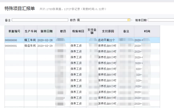 除車間的工序匯報以外,針對辦公室或其他獎勵等機制的工資錄入,通過特殊項目匯報單進行工資匯報,單據(jù)中的項目可自定義,及時形成對應(yīng)的工資表。